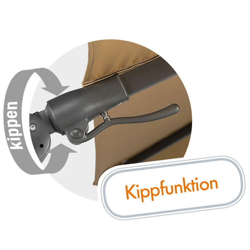 DIE TWIST-FUNKTION_ Die Twist-Funktion ermöglicht es Ihnen, das Dach des Sonnenschirms in 3 Dimensionen zu verstellen: