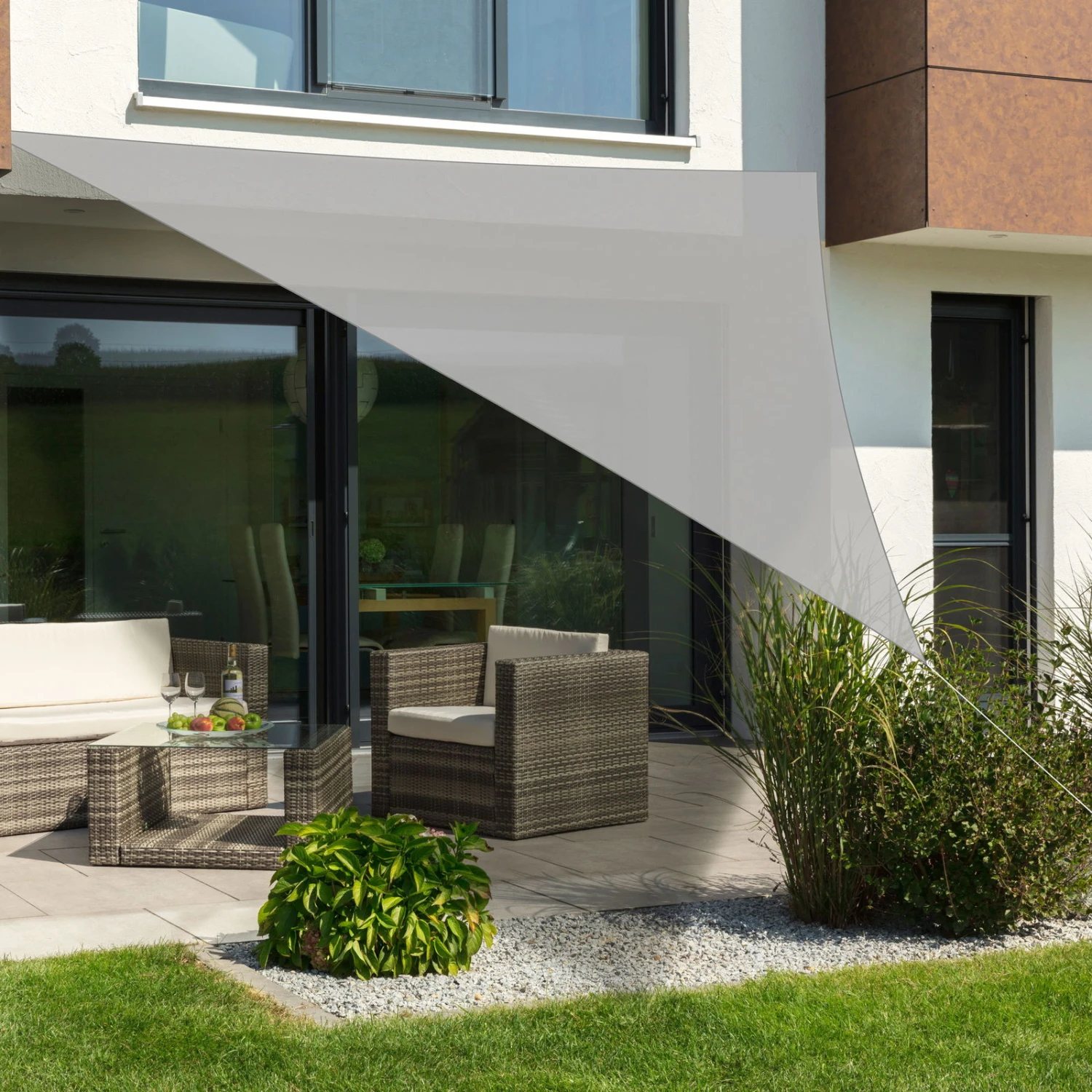 Das dreieckige Sonnensegel von Schneider Schirme ist Ihr eleganter und zugleich unkomplizierter Sonnenschutz für Terrasse oder Balkon. Dieses Segel besteht aus hochbelastbarem HDPE-Gewebe in der Farbe Silbergrau, das sowohl reißfest als auch wasser- und schmutzabweisend ist. Sie erhalten das Sonnensegel inklusive Befestigungsseile und Edelstahl-Befestigungsringe.