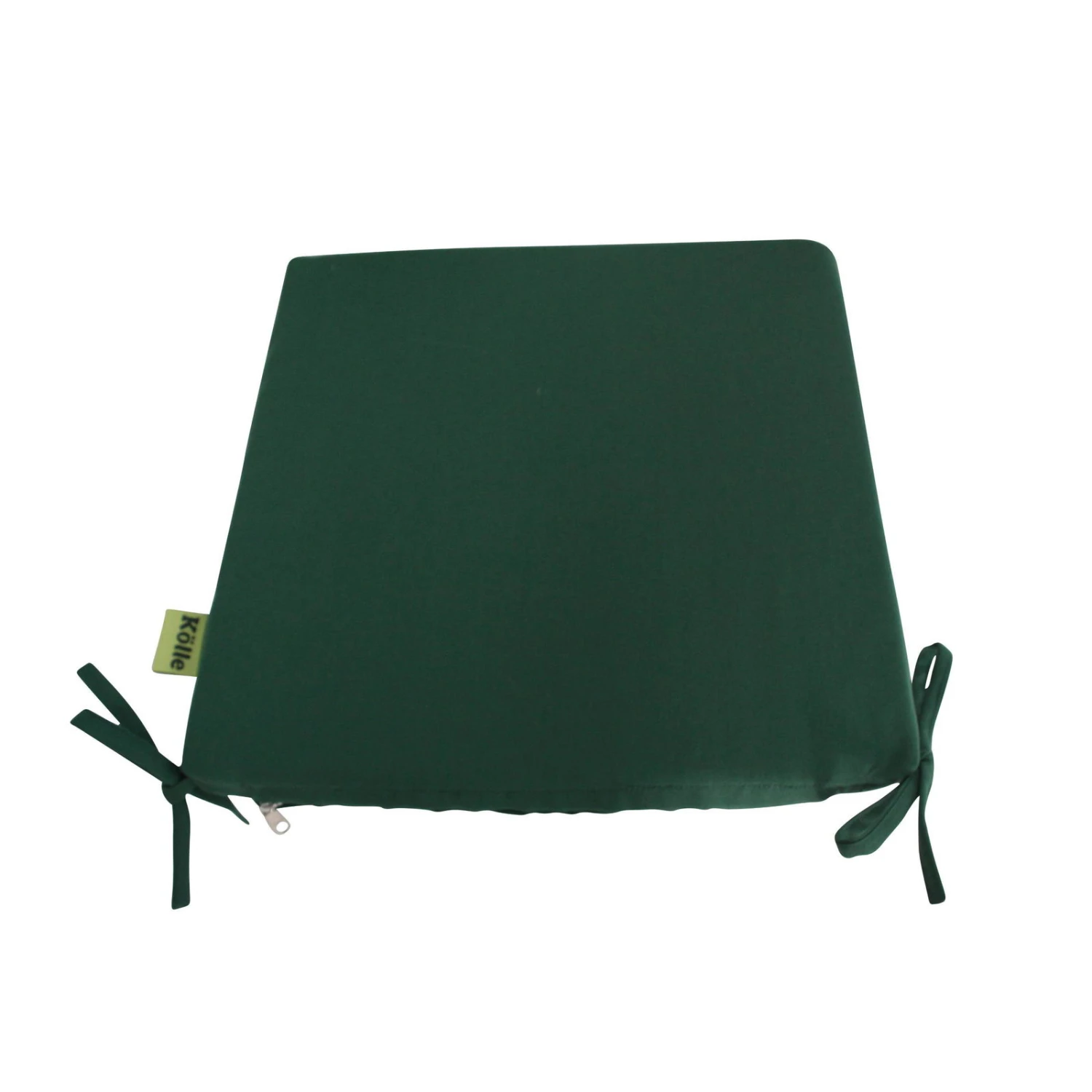Die Stuhlauflage ‚Olivia 61‘ von Kölle in elegantem Dunkelgrün überzeugt mit weicher, ergonomischer Polsterung und sorgt für ein angenehmes Sitzgefühl. Dank der Bändchen bleibt die Polsterauflage immer an ihrem Platz. Der Bezug aus modernem wetterfestem und lichtechtem Stoff Dralon lässt sich für die Reinigung problemlos abnehmen.