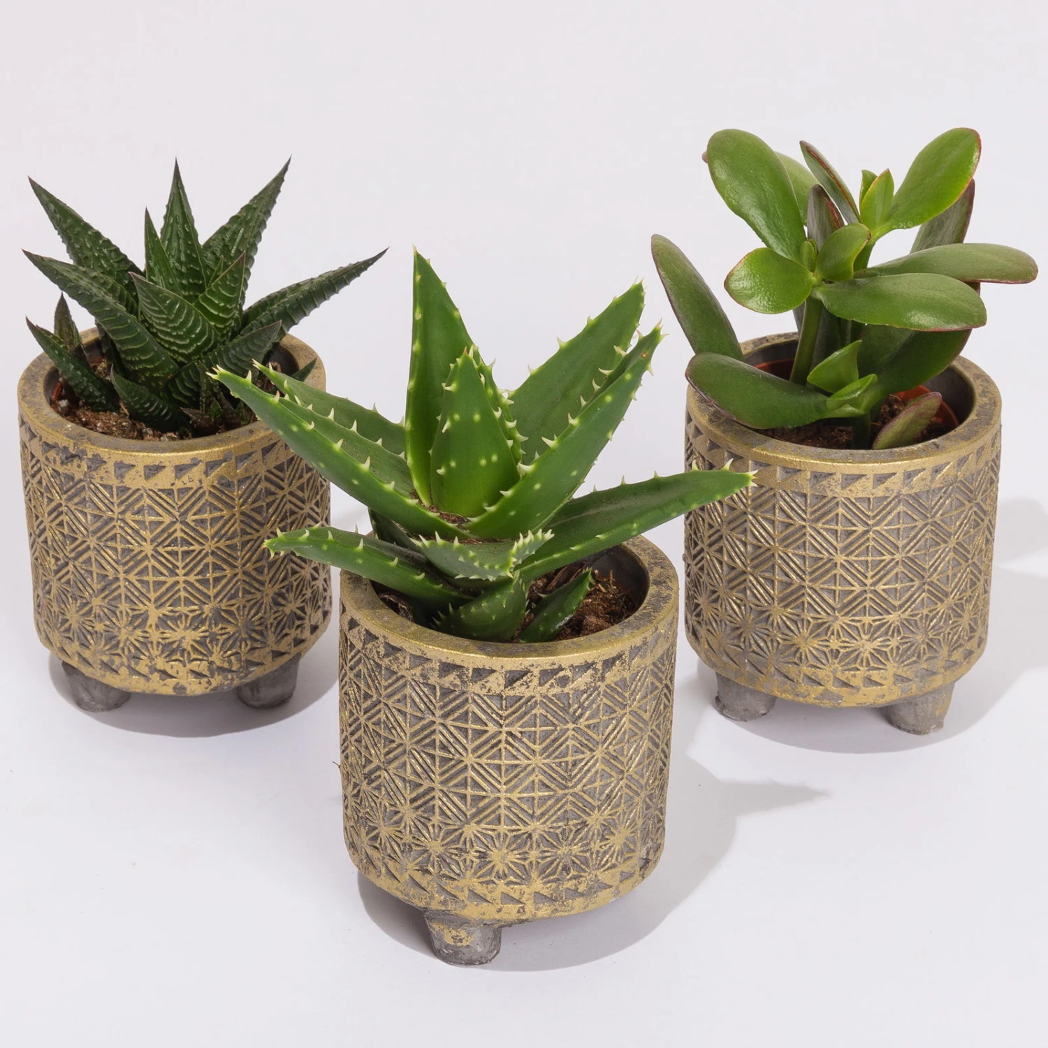 Falls Sie nach einer exotischen Begrünung für Ihr vollsonniges Südfenster suchen, dann bieten sich unsere Minisukkulenten in formschönen Dekotöpfen geradezu an. Diese sukkulenten Zimmerpflanzen sind ausgesprochen pflegeleicht und zeigen eine hohe Toleranz in Hinblick auf die Wassergaben. Lassen Sie das Substrat gründlich antrocknen, bevor Sie Ihre Mini-Sukkulenten wieder gießen. Eine gute Drainage ist für die Pflanzengesundheit entscheidend, daher eignet sich Kakteenerde für die Pflege der Pflanzen am besten. Im Sommer brauchen die Sukkulenten recht viel Wärme, sodass die Raumtemperaturen nicht unter 20 Grad Celsius fallen dürfen. In der kalten Jahreszeit reichen für das Wohlbefinden moderate zehn Grad Celsius aus. Daher sind unsere stylischen Mini-Sukkulenten zum Beispiel auch für einen beheizbaren Wintergarten die richtige Wahl.
