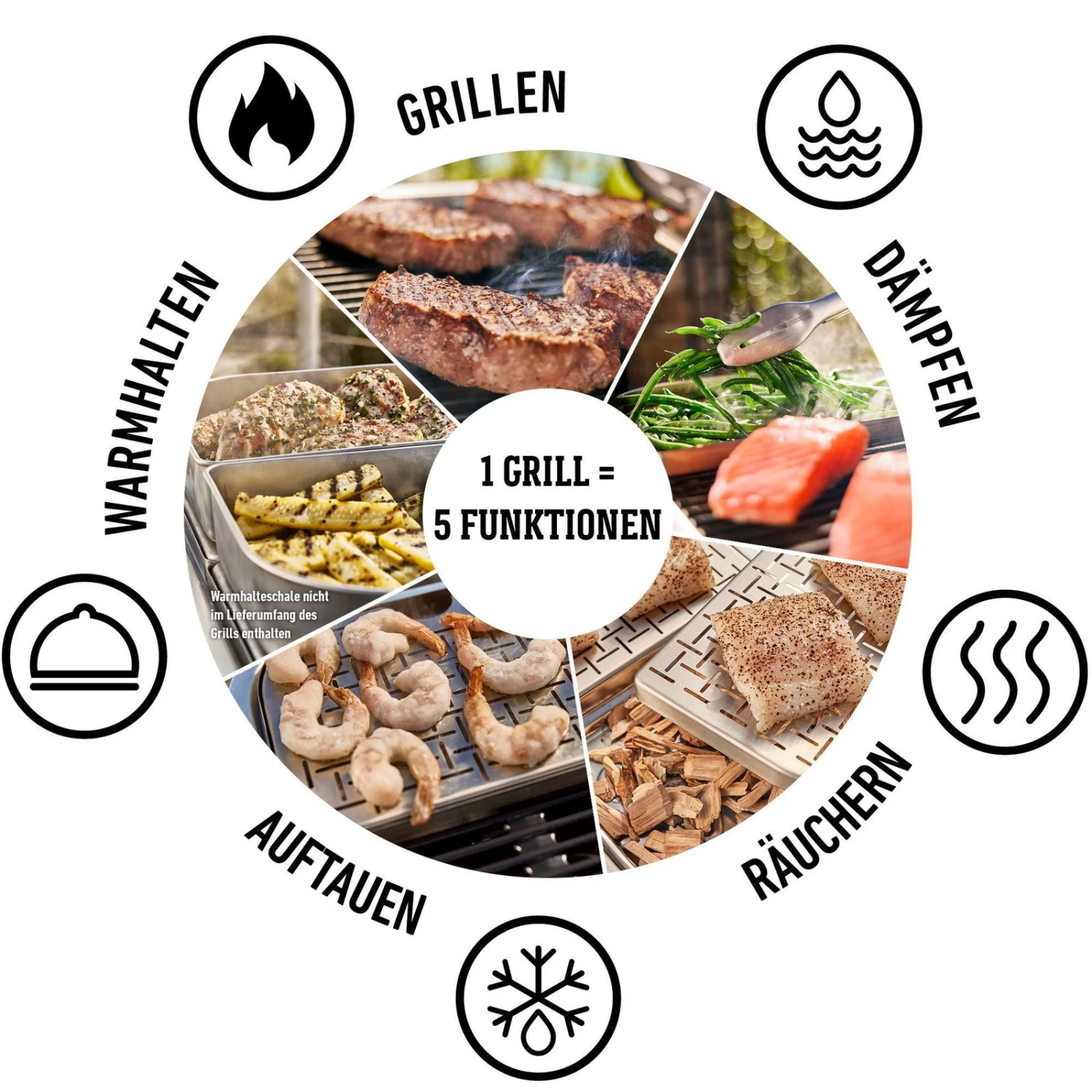 Der handliche Elektrogrill ‚Lumin Compact‘ steht großzügig dimensionierten Grillgeräten in nichts nach. Dieser vielseitige Elektrogrill von Weber beherrscht neben dem klassischen Grillen auch Dämpfen, Garen und Räuchern. Dabei entwickelt das leistungsstarke Gerät Temperaturen bis zu 315 Grad Celsius und verfügt unter anderem über eine praktische Warmhaltefunktion.