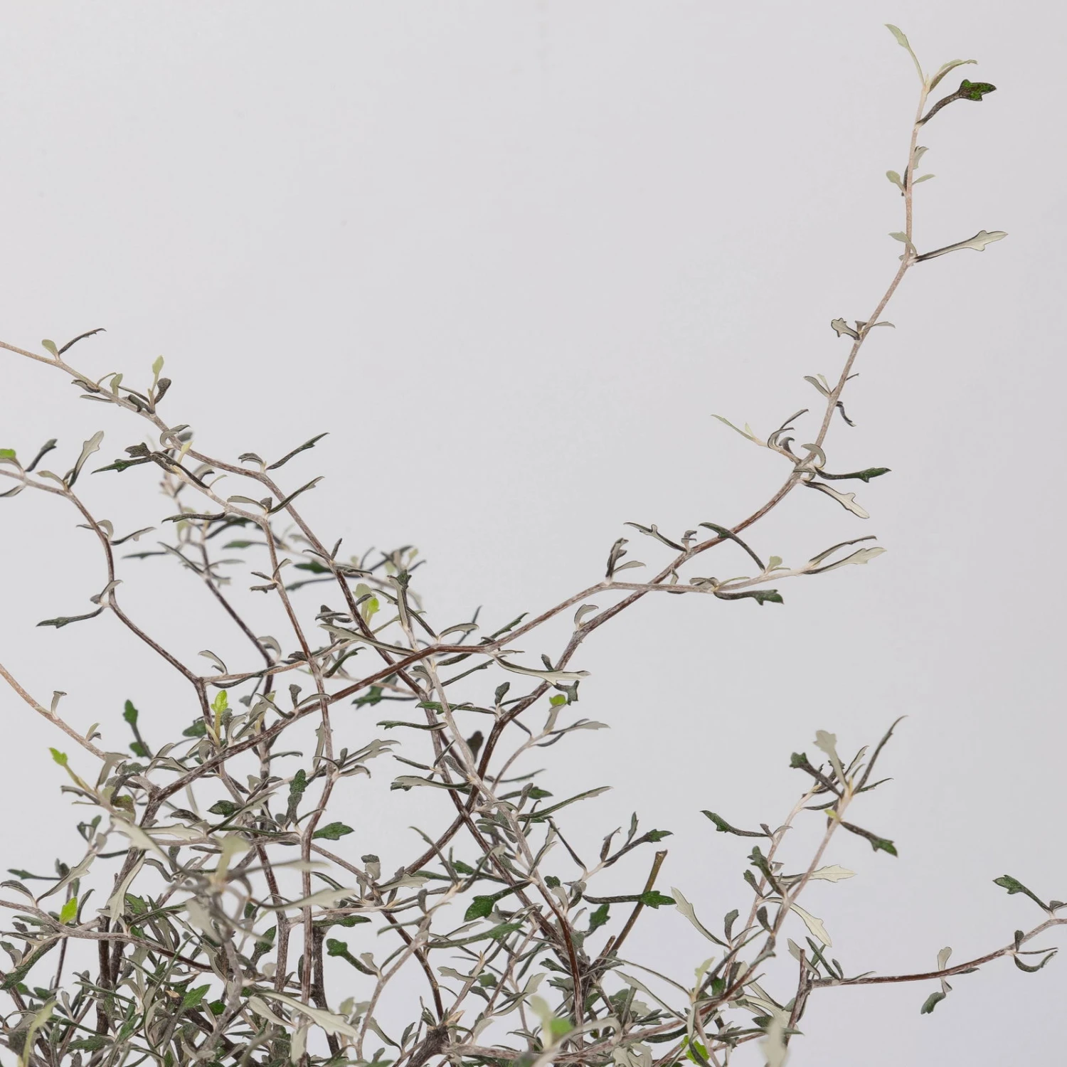 Der Zickzackstrauch (Corokia cotoneaster) mit seinem kleinen oval bis eiförmigen Blättern begeistert mit seinem filigranen Wuchs. Die immergrünen bzw. silbernen Blätter bleiben über das gesamte Jahr an der Pflanze erhalten. Der Wuchs dieser Zimmer- oder Kübelpflanze ist aufrecht pyramidal, die Äste und Triebe haben einen bizarren zickzackförmigen Wuchs. Die Pflanze erreicht eine Höhe von bis zu 2 Metern.