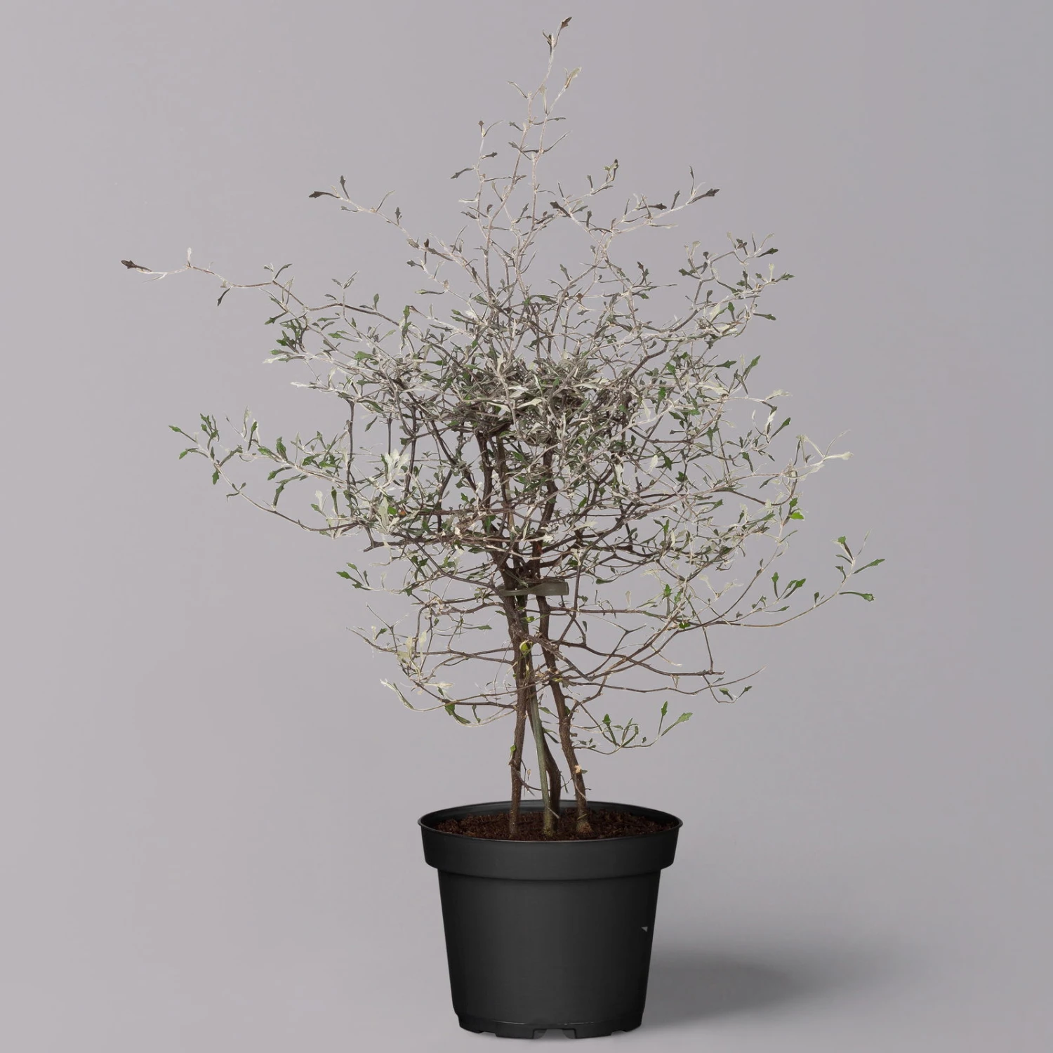 Der Zickzackstrauch (Corokia cotoneaster) mit seinem kleinen oval bis eiförmigen Blättern begeistert mit seinem filigranen Wuchs. Die immergrünen bzw. silbernen Blätter bleiben über das gesamte Jahr an der Pflanze erhalten. Der Wuchs dieser Zimmer- oder Kübelpflanze ist aufrecht pyramidal, die Äste und Triebe haben einen bizarren zickzackförmigen Wuchs. Die Pflanze erreicht eine Höhe von bis zu 2 Metern.